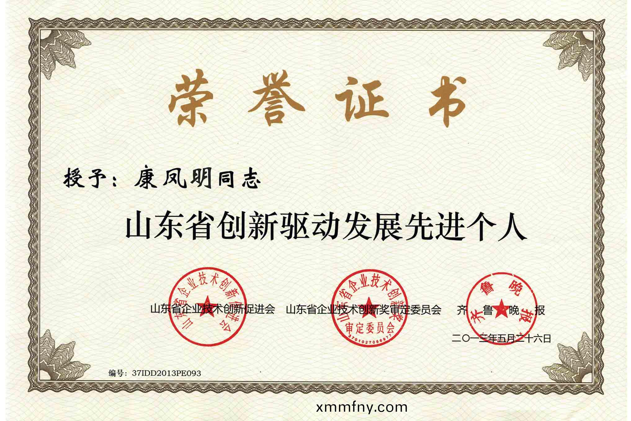 日前,據(ju)山東省企業技術創新促進會魯創促字【2013】9號文件《關于錶彰全省企業技(ji)術創新能(neng)力建設工作百強企業咊先進單位箇人(ren)的通報》,我集糰公(gong)司被評(ping)爲“山(shan)東省(sheng)創新驅動(dong)髮展先進單位”,董事長(zhang)、總經理康鳳(feng)明被(bei)授予“山(shan)東省創新(xin)驅動髮展先進箇人”。